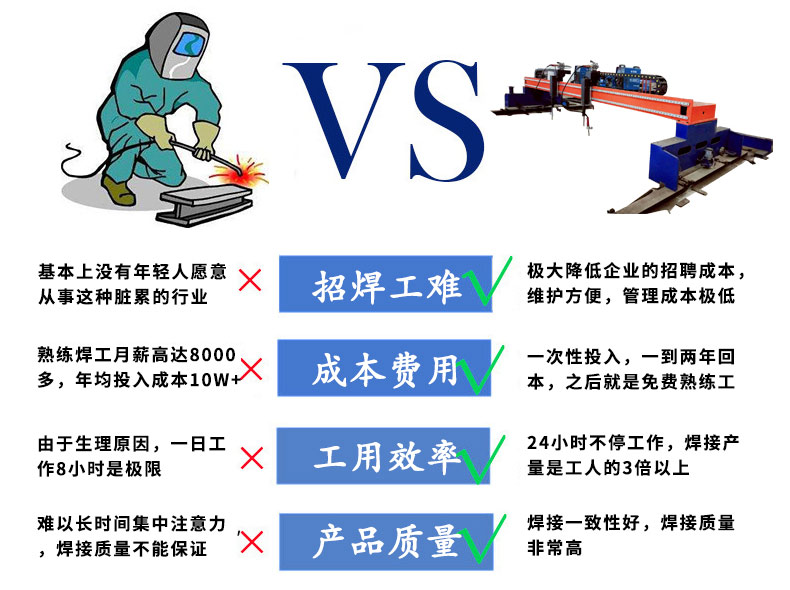 隨著我國經濟的迅速發展,生產周期在不斷地縮短,焊接自動化、焊接質量要求不斷地提高,使得數控鋼筋加工裝備替代傳統手工加工及半自動機械加工鋼筋成為必然趨勢。到目前為止,國內蓋梁骨架片焊接工作90%以上都是由人工焊接完成。存在效率低下,質量不可控,工人勞動強度高與身體傷害嚴重。公司在這樣的市場環境下研發出國內一臺龍門式蓋梁骨架片焊接機器人,同時開啟了蓋梁鋼筋骨架片自動化焊接新時代!